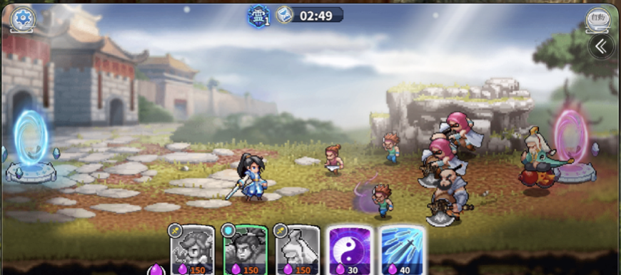 グラフィックはレトロなドットで描かれたキャラによるバトルが展開していきます。自分のゲートを破壊されたら負け、相手のゲートを破壊するか、敵を全滅させたら勝利です。
