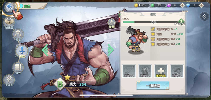 仲間にしたキャラクターはパラメータだけでなく、武器、防具などを装備することでも育成強化ができます。
