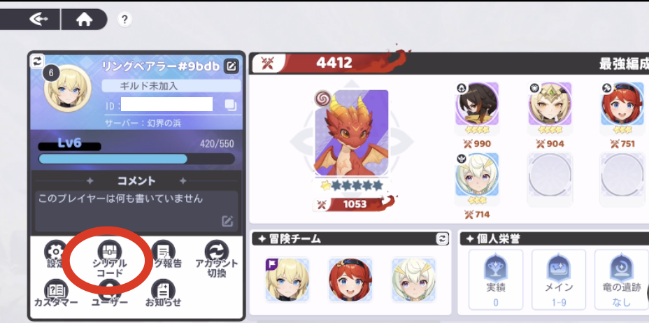 「ドラベル(ドラゴントラベラー)」のギフトコード(シリアルコード/交換コード)はゲーム内から行います。