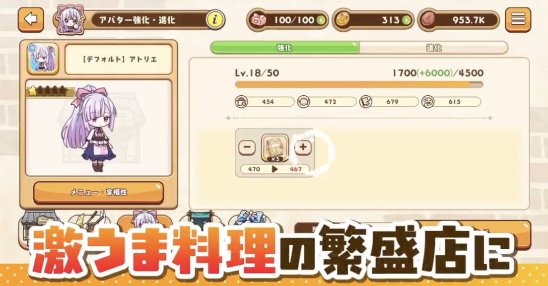 ゲーム攻略のポイントは「衣装チェンジ」!衣装を変更することで提供できるメニューも変化します。