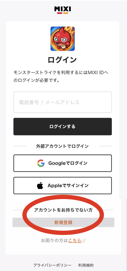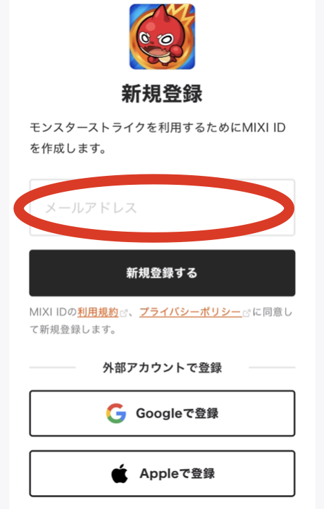 モンストのシリアルコード入力を行いためには、MIXI IDの新規作成が必要です。