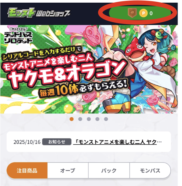 モンストのシリアルコードは簡素な「シリアルコード入力ページ」ではなく、MIXI IDと連動しており、モンストWebショップ内にあるため、若干複雑になっています。