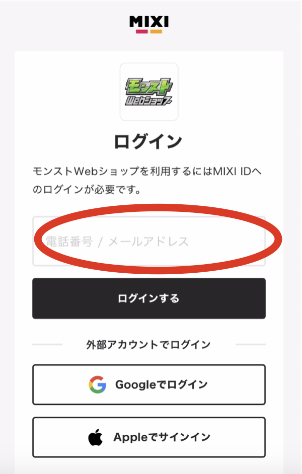 ②モンスト公式サイトのモンストWebショップにMIXI IDでログインする