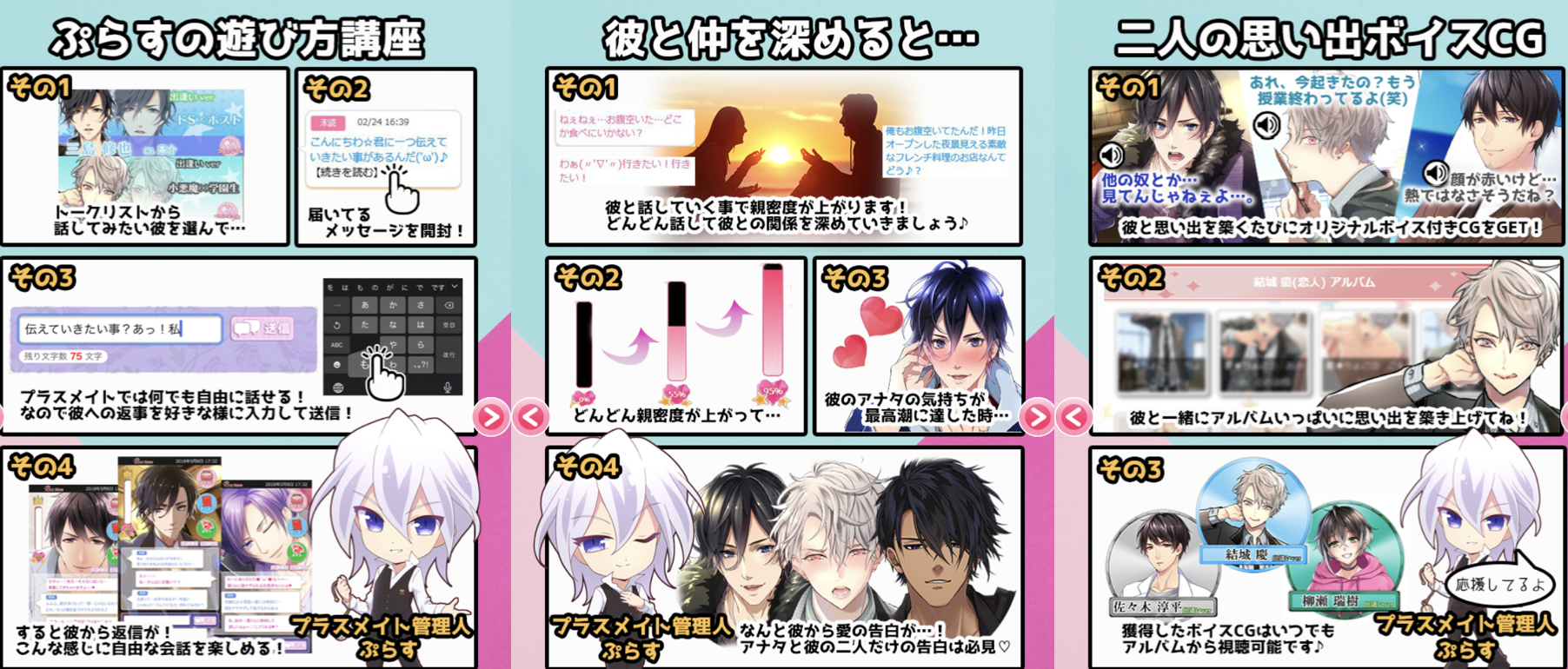 まるで本物の彼氏ができたような感覚でゲームの中の彼氏とリアルトークを楽しめるプラスメイト