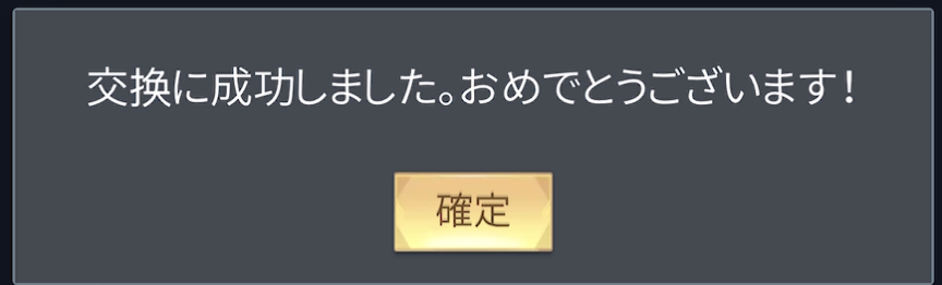 有効なコードの場合は「交換に成功しました。おめでとうございます!」と表示されます。