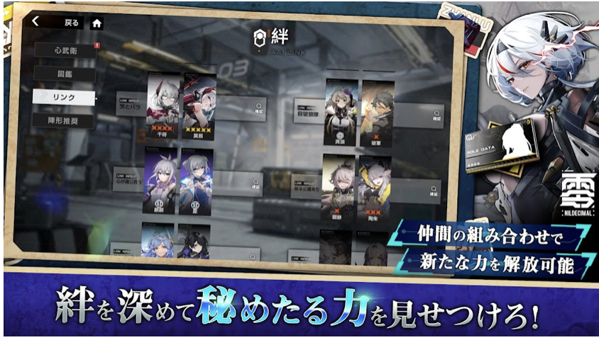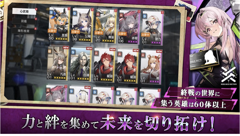 「終境シンフォニー」ではアイテムを集めて仲間を強化していきます。強化のメインになる「コア」を集めて合成し、キャラクター「義体」にセットすることでキャラクターの潜在能力が解放していきます。