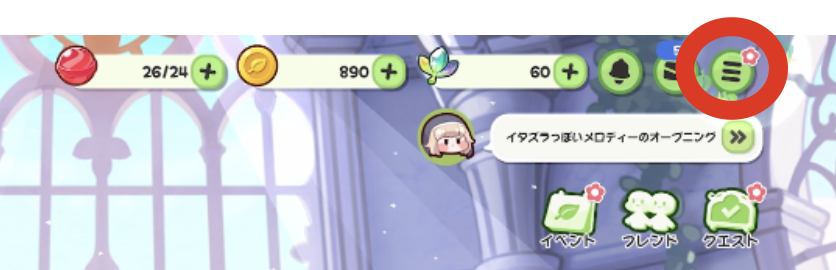 メイン画面右上にある3本線のメニューアイコンをタップします。