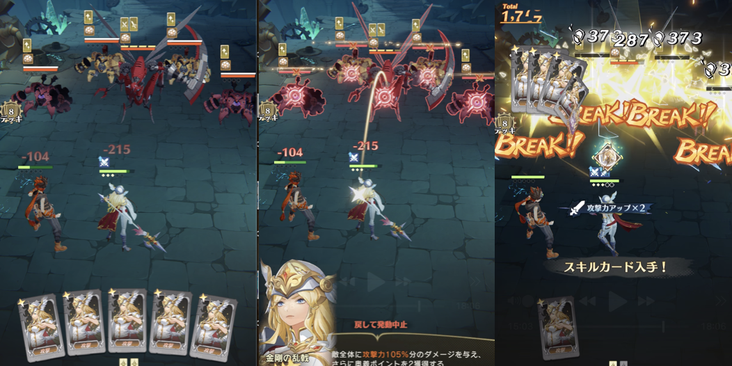・カード1枚の場合は敵味方1体に対して効果を発揮しますが、合成(マージ)することで、複数のターゲットに攻撃回復が可能