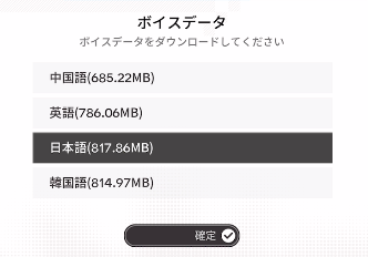 しかし、ゲームを初回起動するとボイスデータのダウンロードが必要になります。