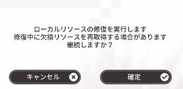 こちらはキャッシュ削除機能ではないのですが、ゲームの動作に不具合があったばい、リソースチェックを行い、修復する機能になります。