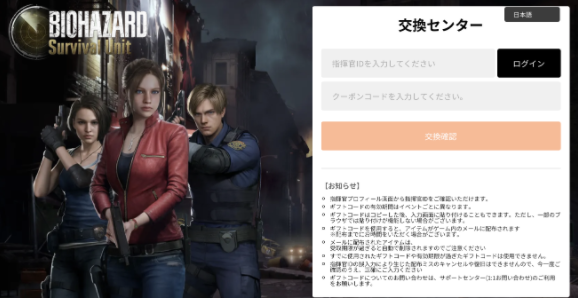 バイオハザードサバイバルユニット最新ギフトコード