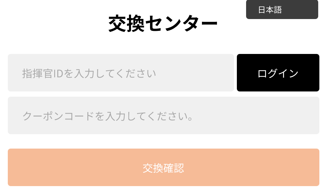 ②コード入力サイトで「指揮官ID」とコードを入力