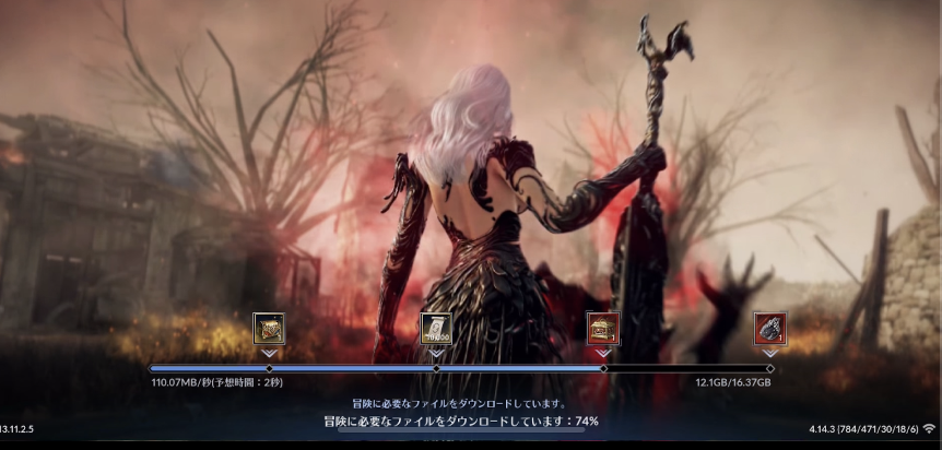 しかしゲーム初回起動時に追加で16.37GB(2025年12月時点)のデータダウンロードが必要になります。