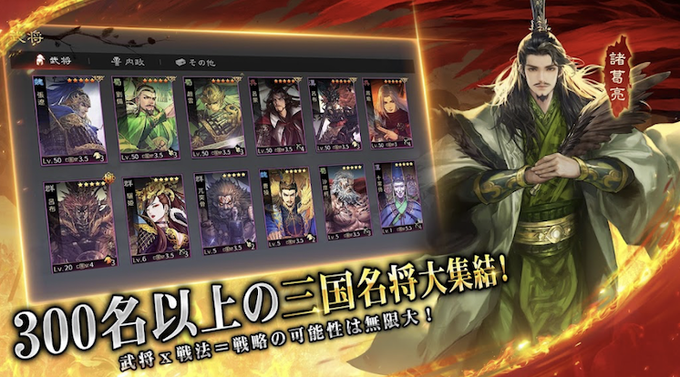 スマホ向け三国志ゲームの中でも、ただ武将を集めて戦うだけではなく