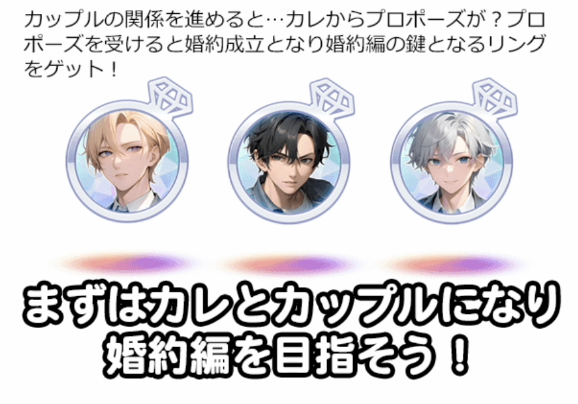 リングラムは、「出逢い編」から始まり、関係を深めていく「恋愛編」、そして最終的に「婚約編」へと進化します。