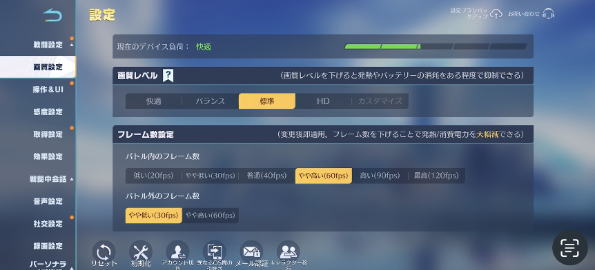 高画質や高フレームレートは見やすくなりますが、そのぶん端末負荷も上がります。