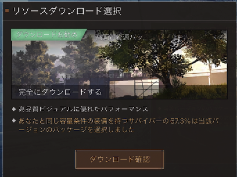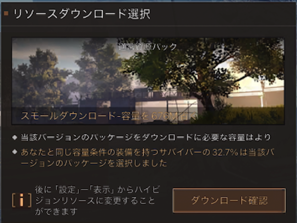 ゲーム開始時に追加ダウンロードが必要なのですが「スモールダウンロード版」「完全ダウンロード版」の2種類から選択できます。