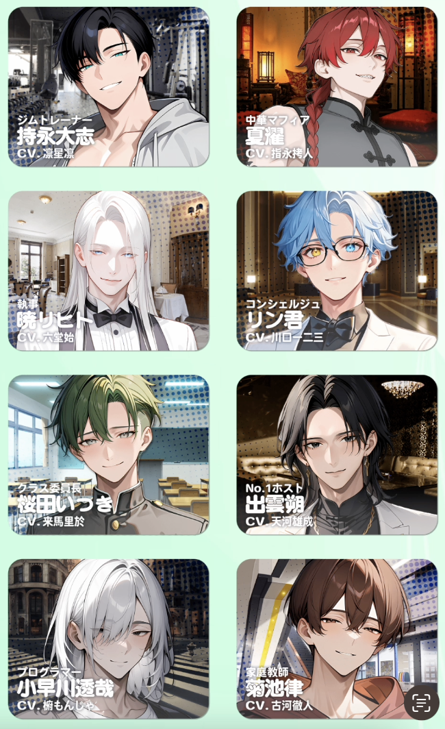 ・それぞれのキャラクターには独自のバックストーリー、性格、職業が設定されており、自分の好みに合った「彼氏」を選んでストーリーを進めることができる