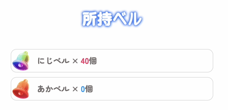 ゲーム内通貨には「あかベル」「にじベル」があり、無料の通貨が「あかベル」、有料のベルが「にじベル」になります。