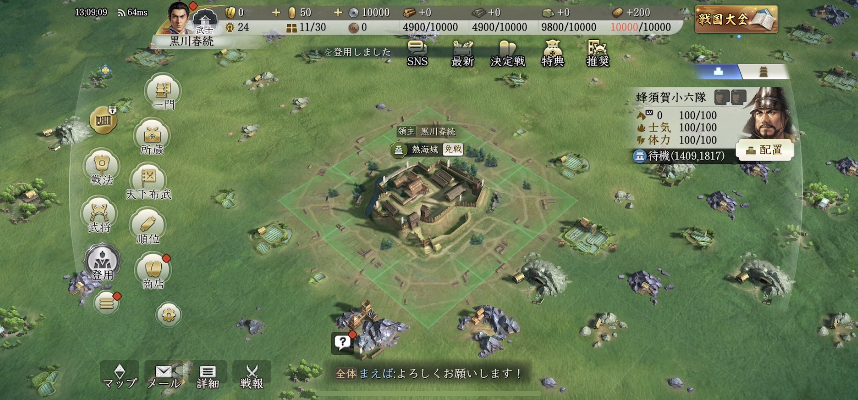 気になる合戦は刻々と変化する戦場マップの上で、臨機応変に部隊を移動指示していくものになっています。