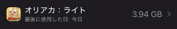 よってゲーム開始直後、改めてアプリ容量を確認すると3.94GBでした。