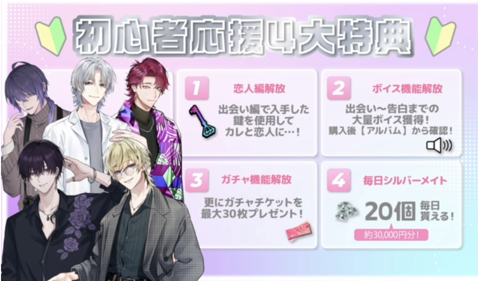 毎日、シルバーメイトが合計3万円分もらえるのが一番大きなメリットです。これだけあれば、その後課金しなくても当分は会話が楽しめます。