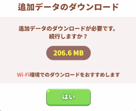 ゲームを起動すると追加で200MB程度のダウンロードが必要になります。