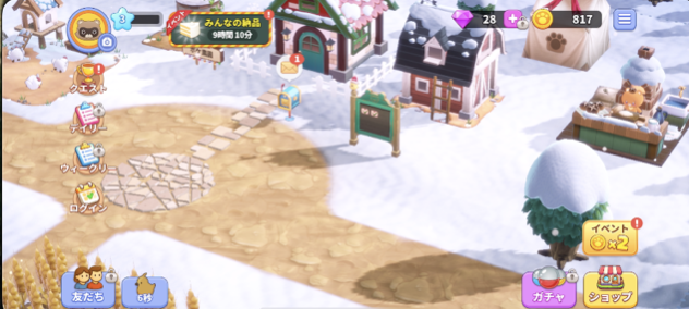 それ以外にも「採掘」「宝石づくり」や、フレンド要素(訪問・協力など)もあるのでまったり、ゆるく楽しめます。