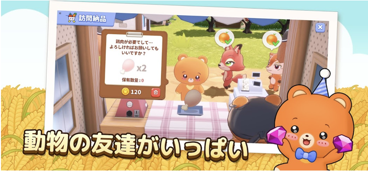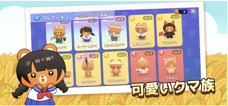 栽培→製作→納品の農園ライフや、クマ族を集めるコレクション要素など