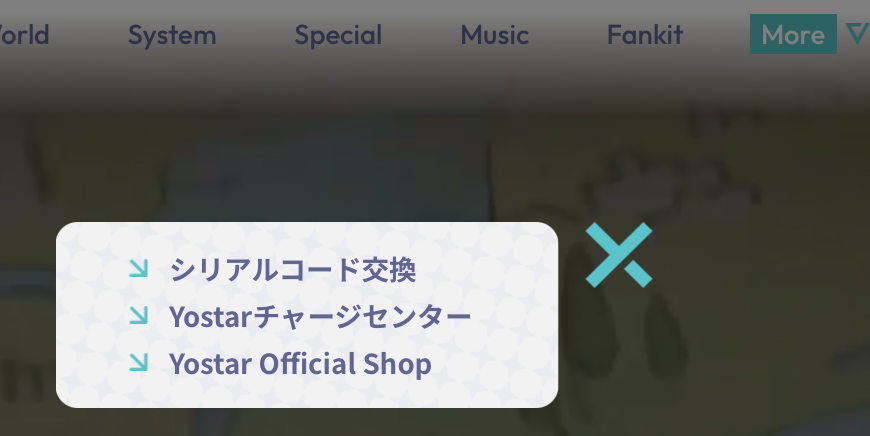 ステラソラ公式サイトの上部にあるメニューバーの中から「more」を選択