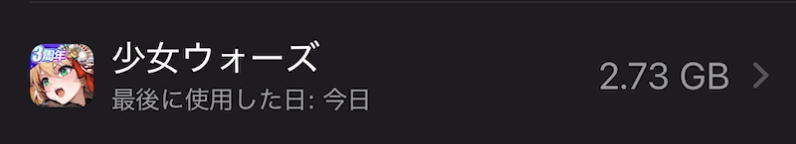 少女ウォーズをアプリストアからダウンロードしたら2.73GBありました(2025年12月21日時点)