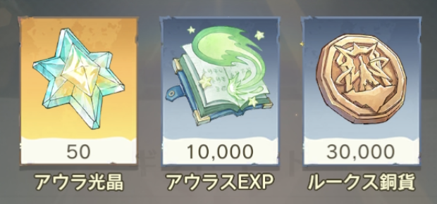 報酬:アウラ光晶×50、アウラスEXP×10,000、ルークス銅貨×30,000